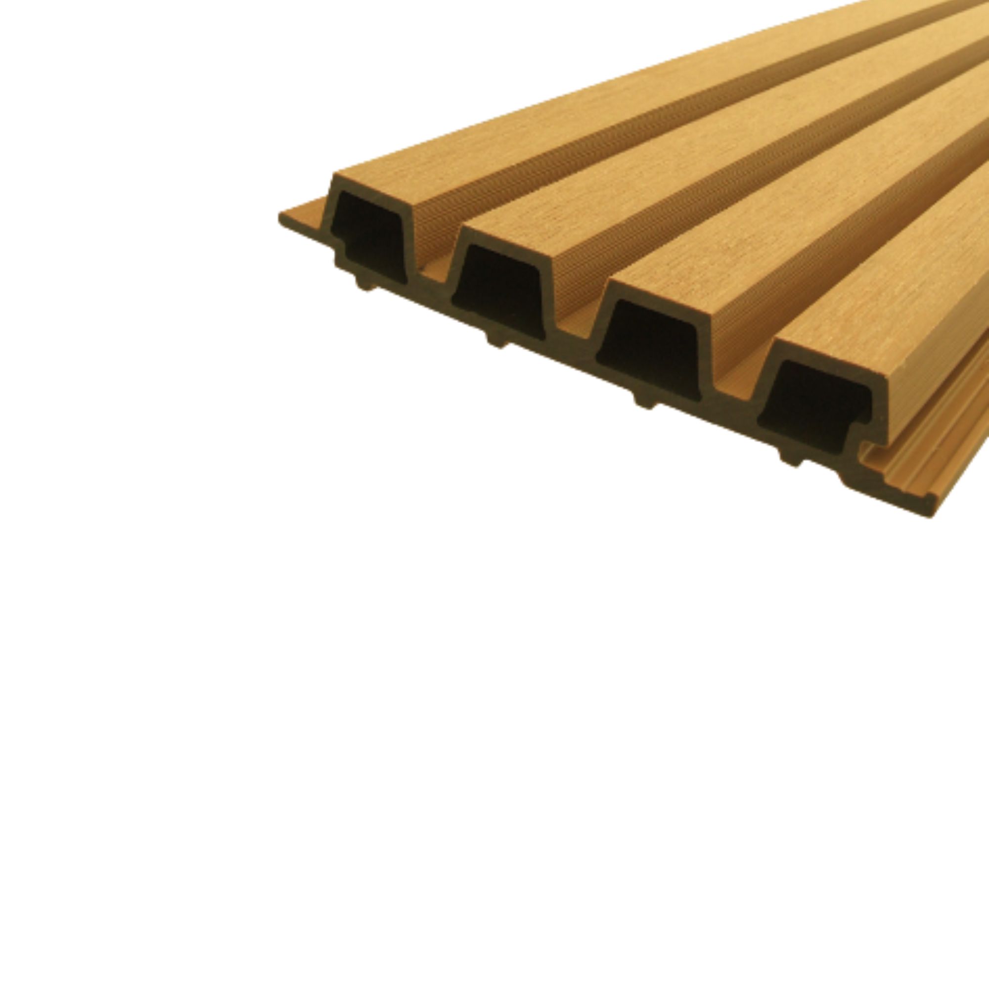 Ez egy koextrudált, 2. generációs WPC panel, amelynél a külső cap layer réteg extra felületvédelmet ad – ezért különösen praktikus teraszok, homlokzati felületek és bejárati zónák burkolására.