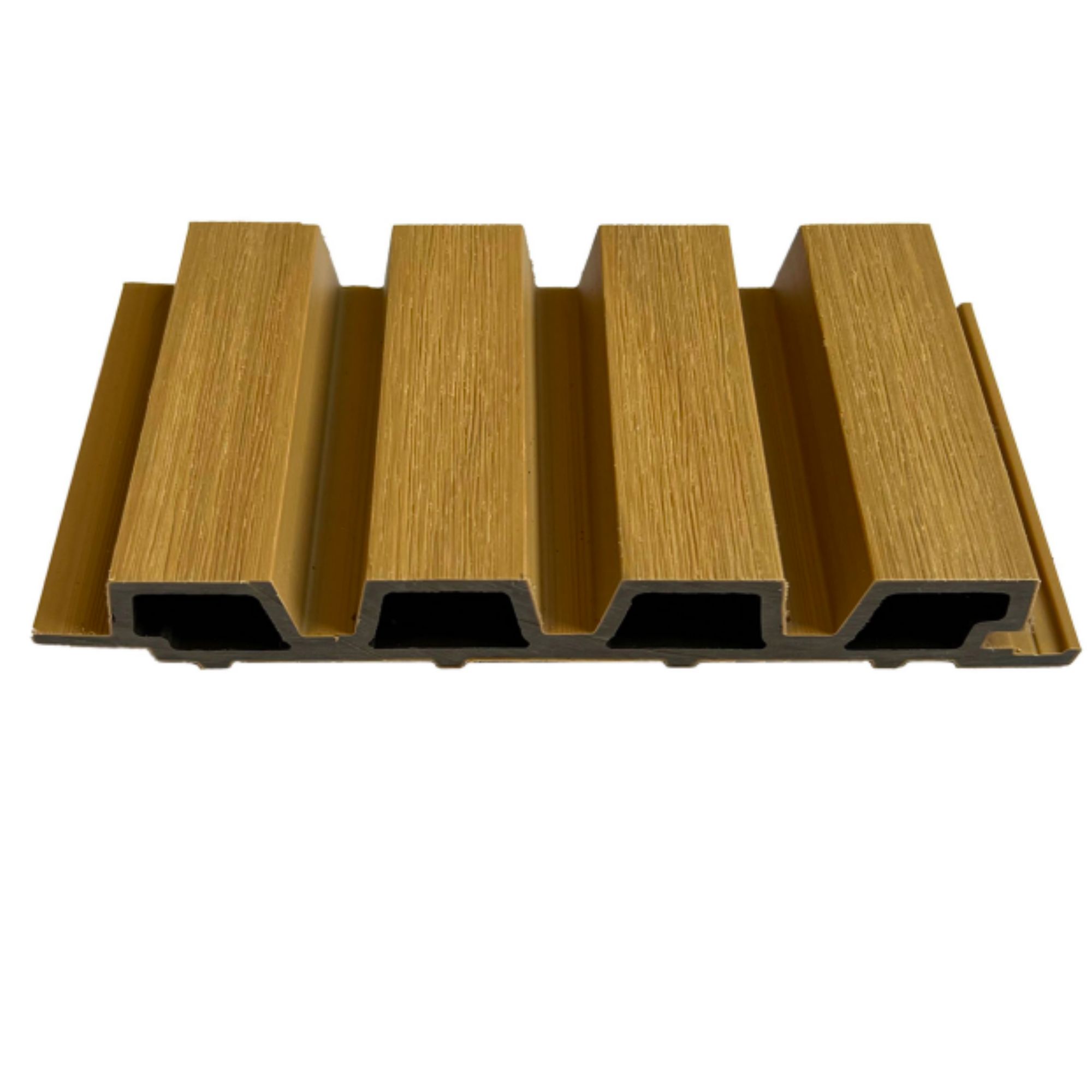 Modern, koextrudált (2. generációs) WPC falpanel cap layer felületvédelemmel: kültérre tervezve, ahol számít az UV-állóság, a tartósság és a könnyebb tisztíthatóság.