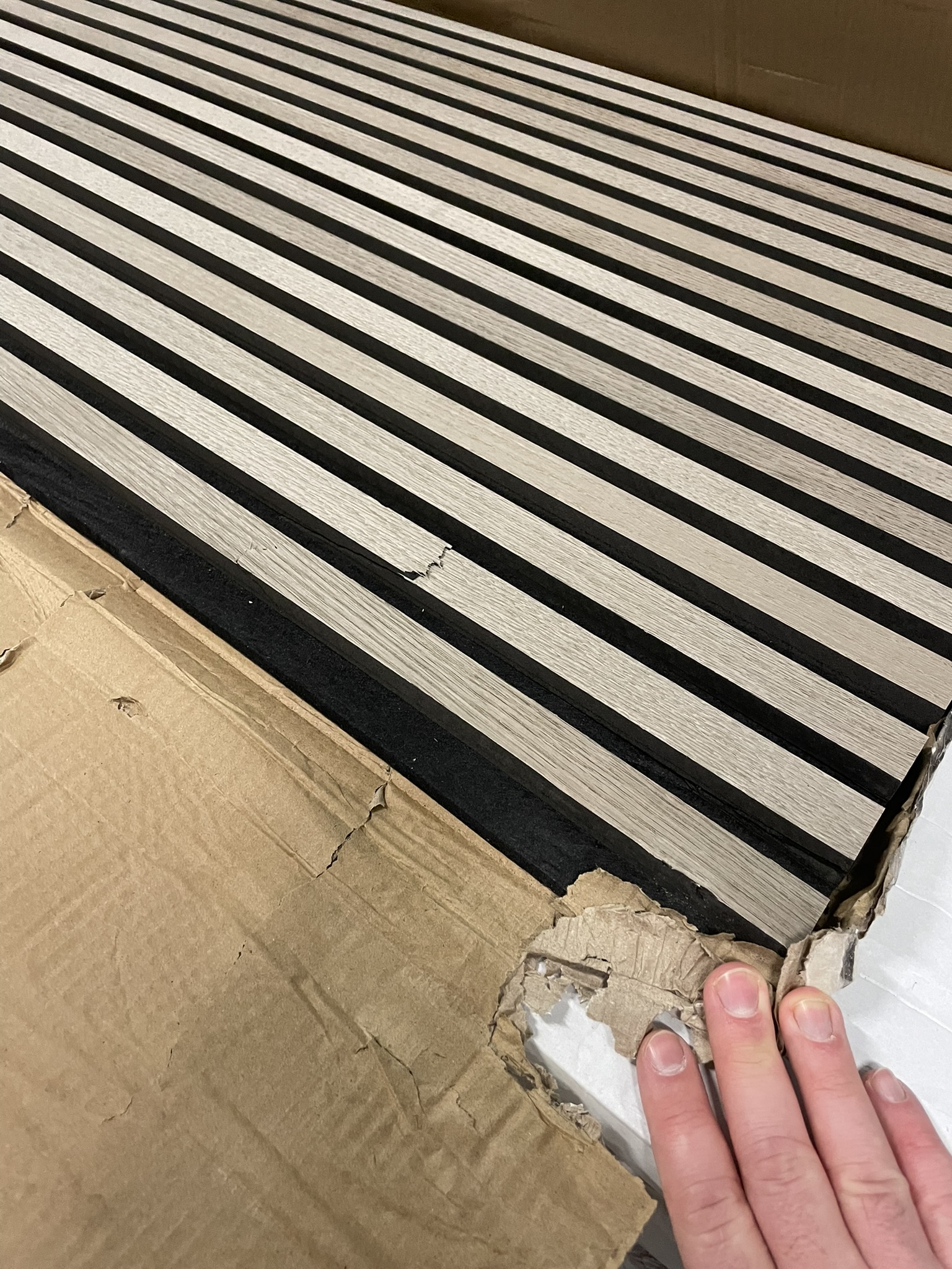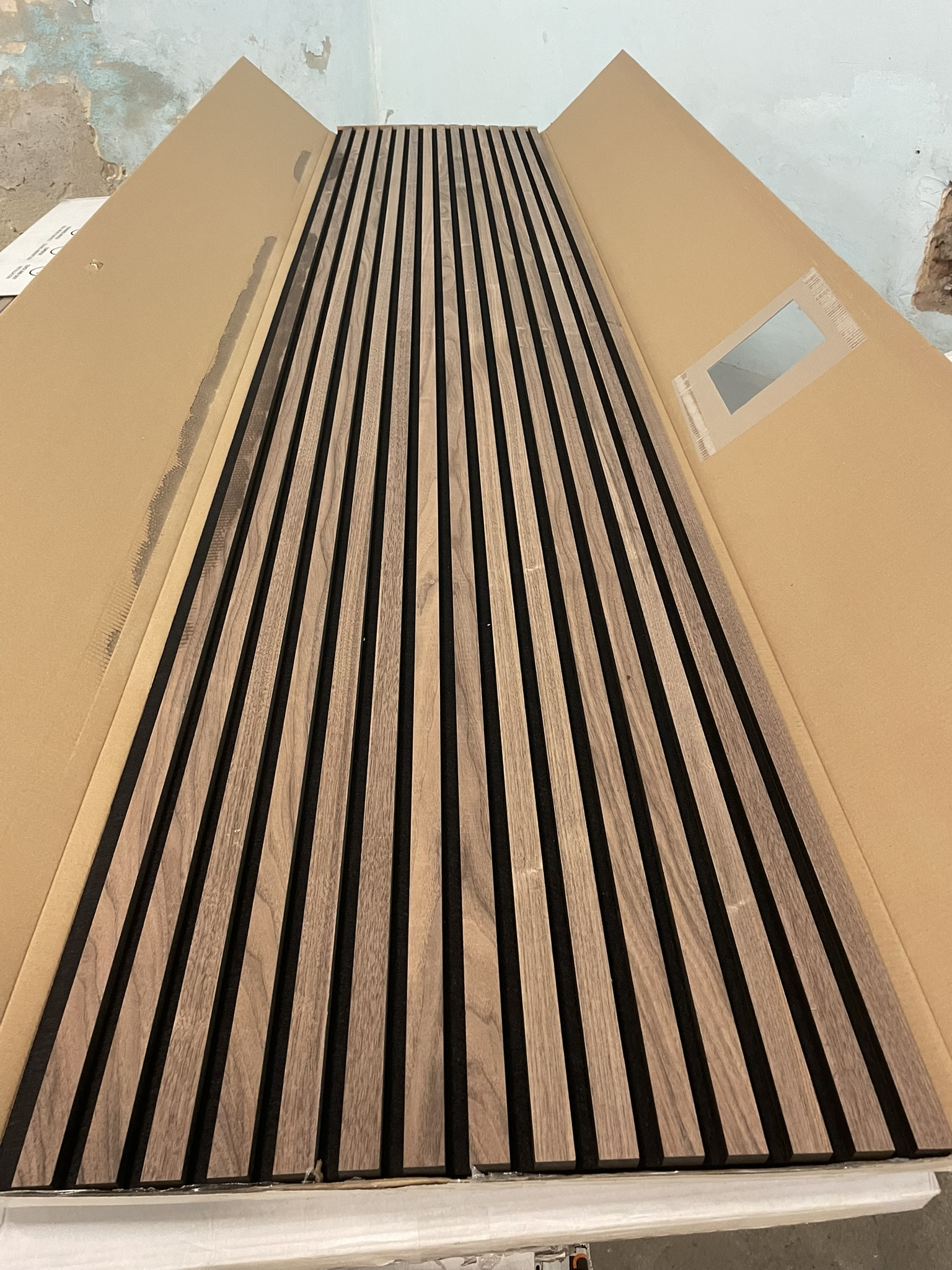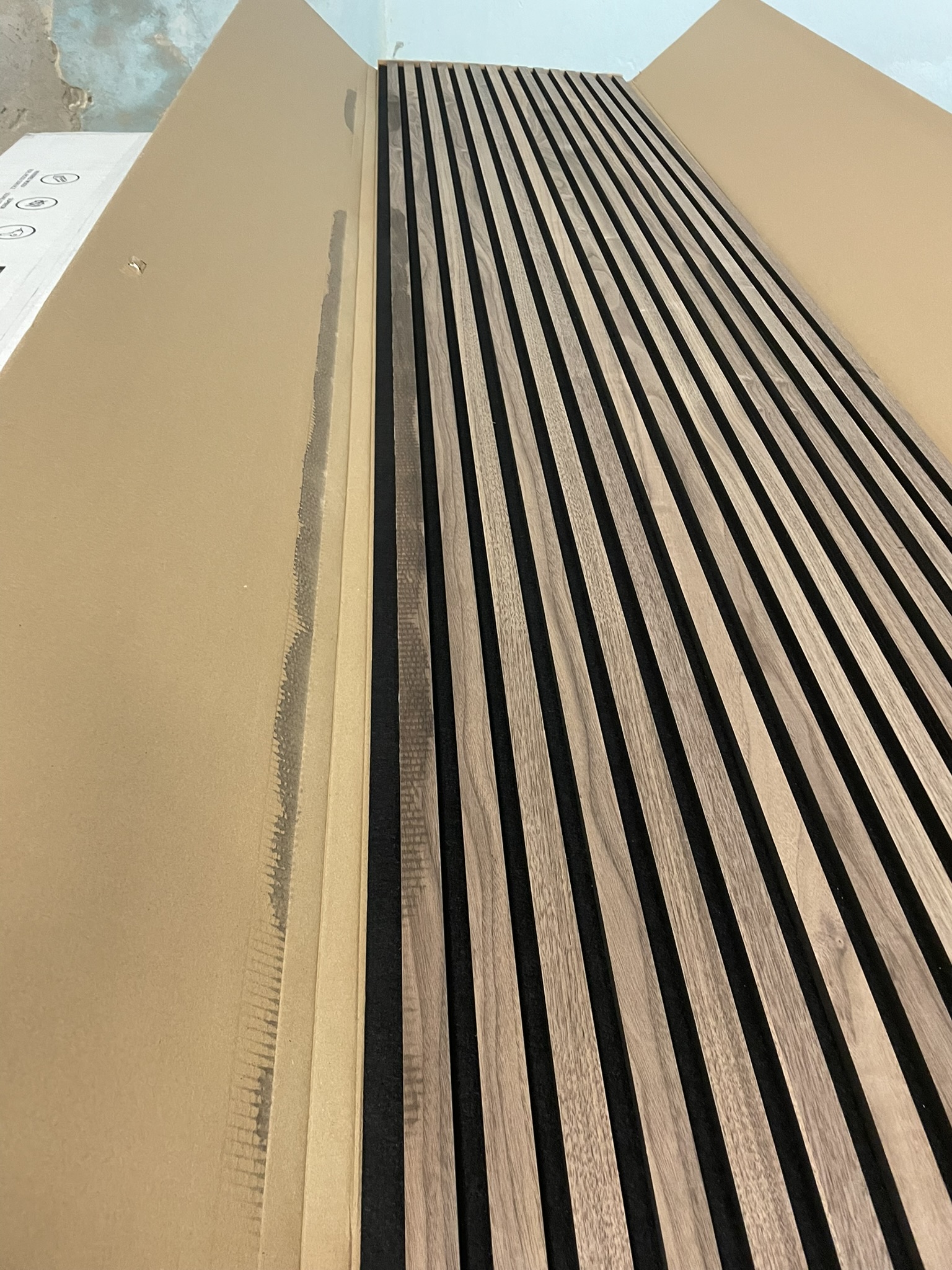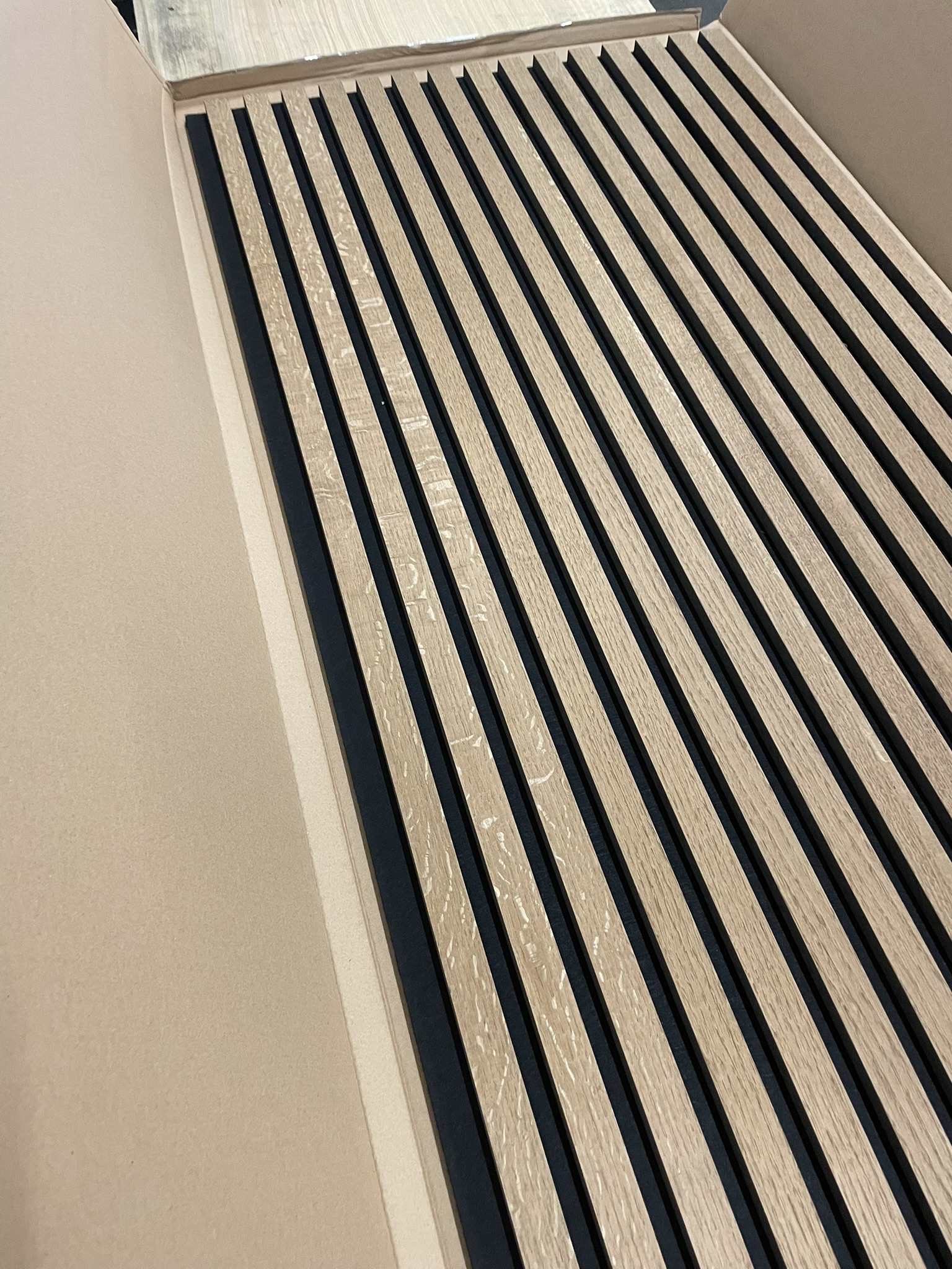 Outlet akusztikus falpanel – vegyes állapotban. Az outlet darabok minimális gyártási hibával (pl. furnérhiba), 1–2 apró sérüléssel, vagy enyhe megázással (csiszolással javítható) is rendelkezhetnek.